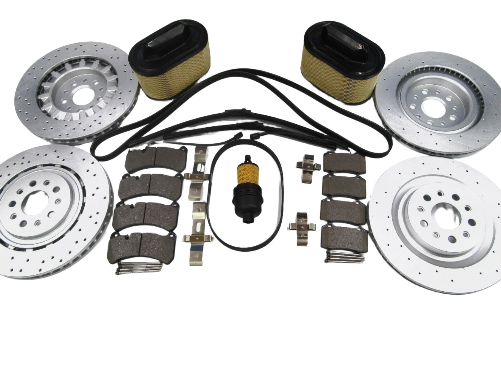 Front and rear brake pads, rotors, air, oil and cabin filter, serpentine belts, wiper blades